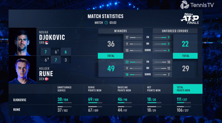 해설진에 따르면 그래도 1점 딴게 다행인게, 조코가 타이브레이트 가서 7-0으로 져본 적은 커리어 통틀어 단 한 번도 없다고 함. 이번에 깨졌으면 아주 좋은 볼거리가 될 뻔 했다.