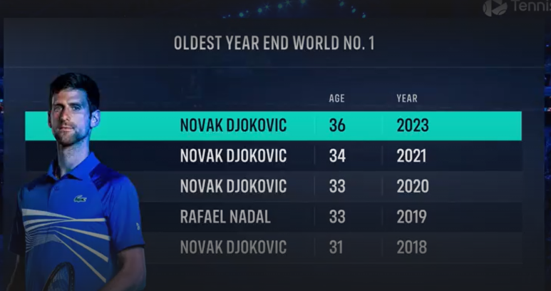 나이 36세 최고령 1위 기록 달성... 나달이 잠시 1위를 기록했지만 이후로는 조코비치가 역사를 새로 쓰고 있다.
