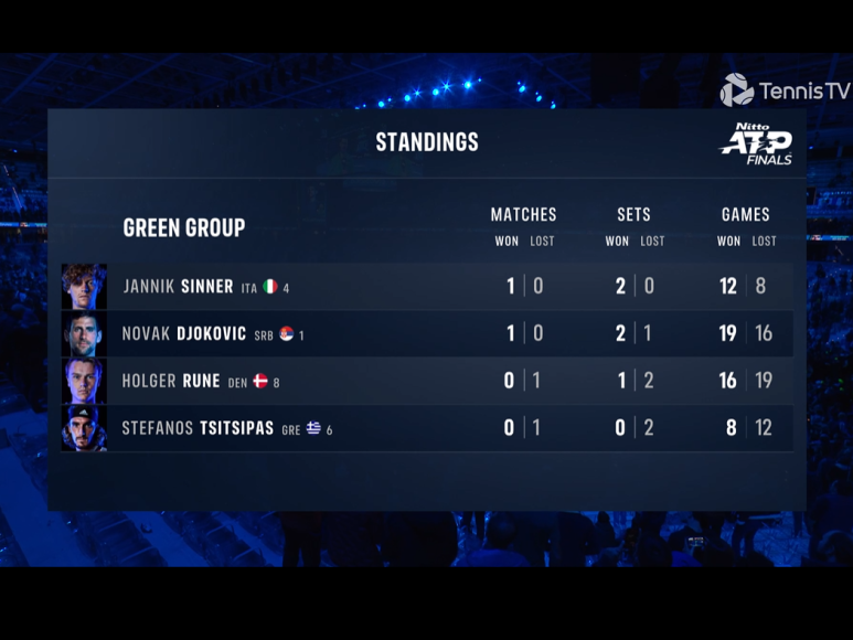 이로써 그린그룹에서 시너랑 조코비치가 1승씩 차지하며 좋은 스타트를 끊었다. 해외 프레스는 루네는 쉽게 이겨도 시너는 상대하기 쉽지 않을 것이라고 예측했던데 나도 그쪽에 한 표 던져본다. 시너의 기량이 너무나 상승세기 때문에...