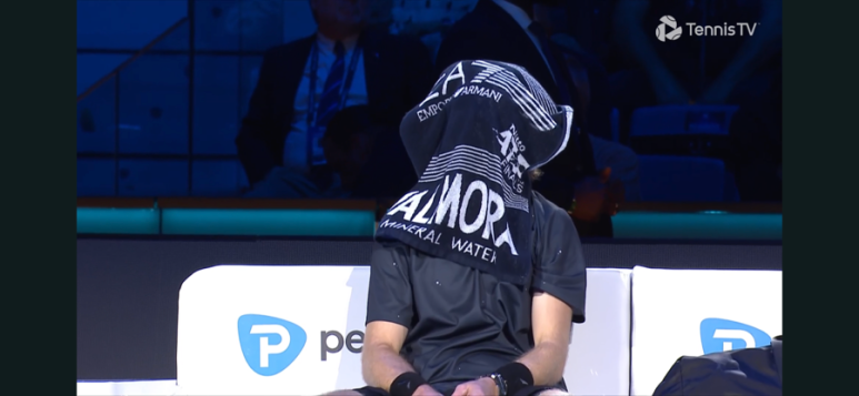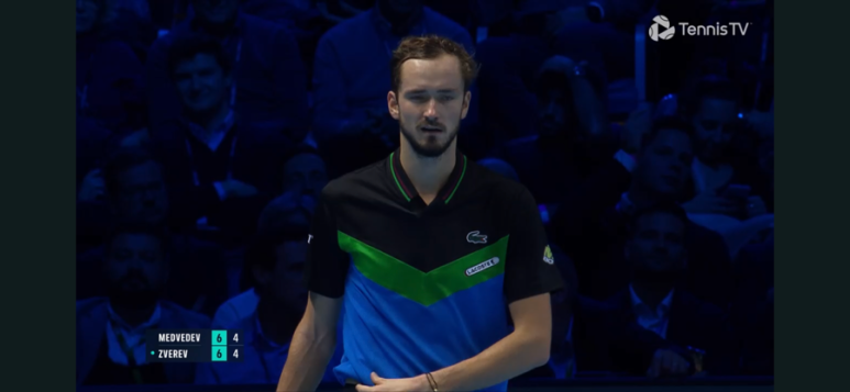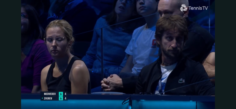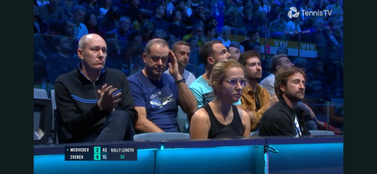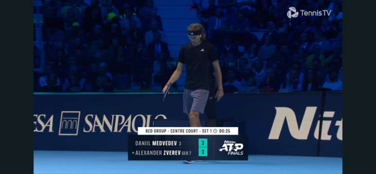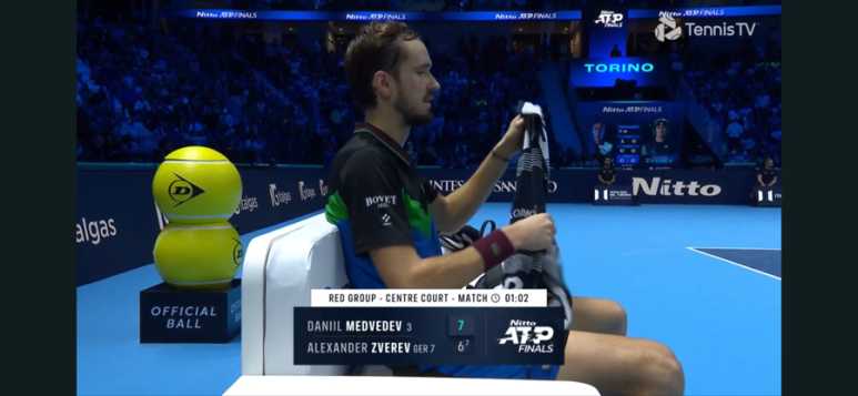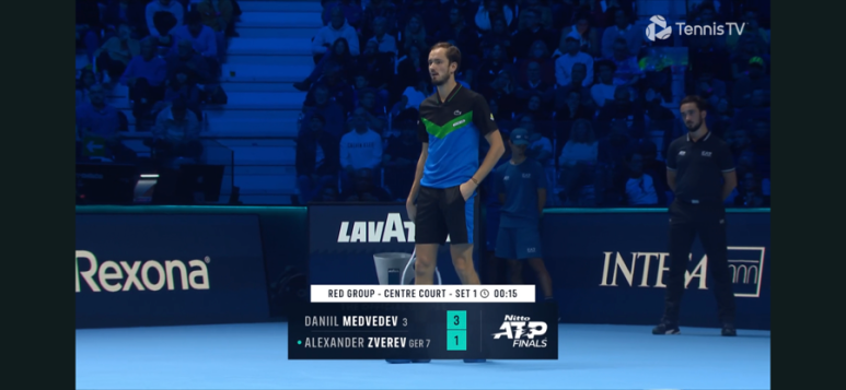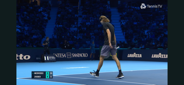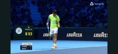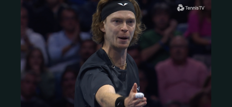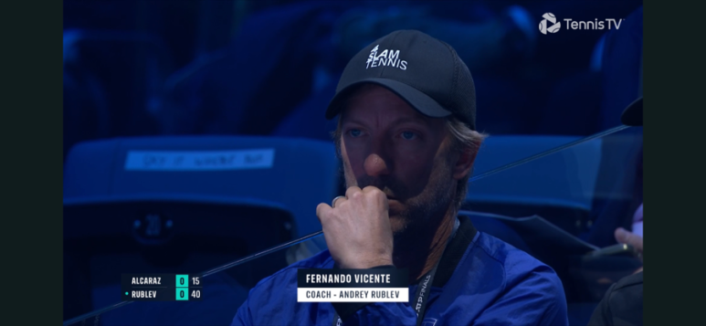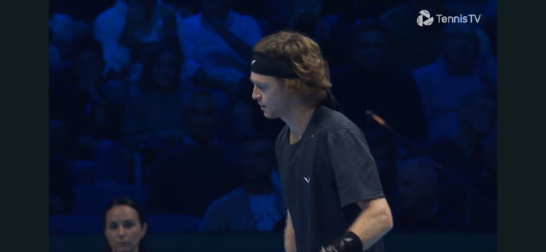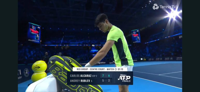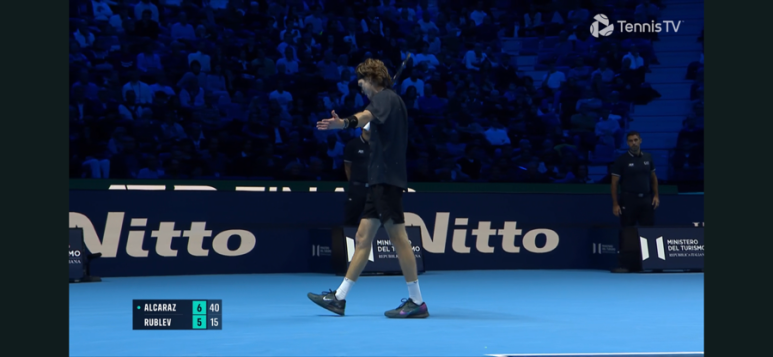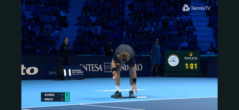 1세트 6-5로 알카라스가 앞서가기 시작하자 루블레프 성질이 드러나기 시작한다.