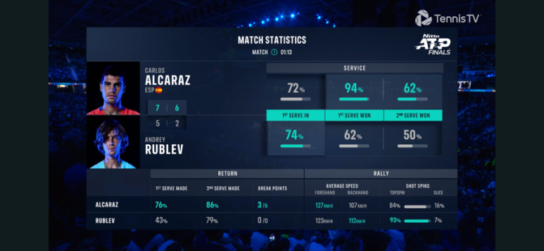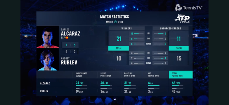 2022년 파이널스 준우승자였던 루블레프와 알카라스는 지금까지 맞대결을 펼쳐본 적이 없다.
