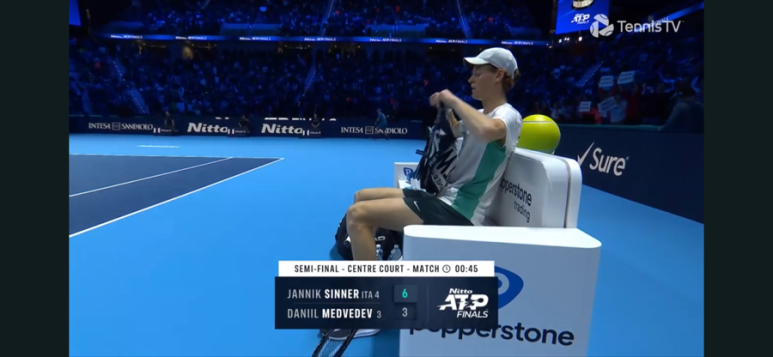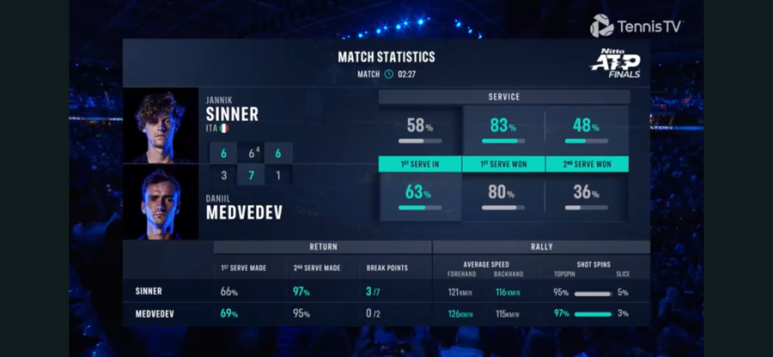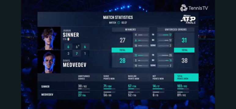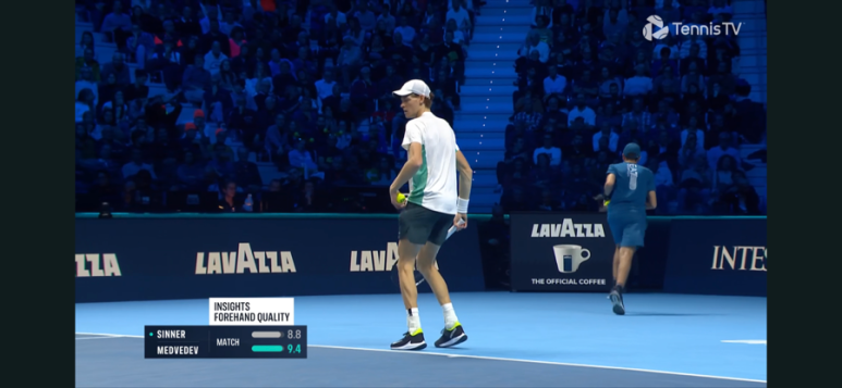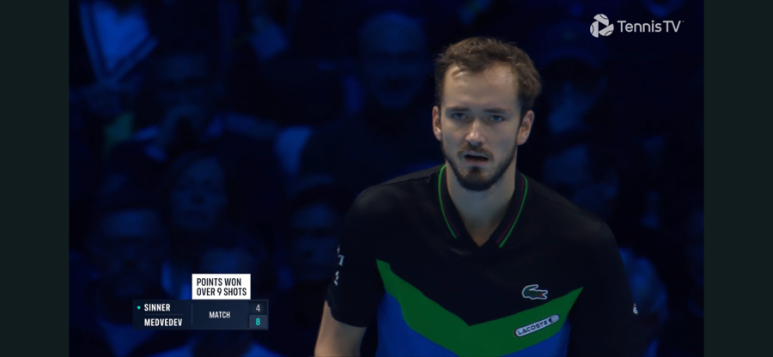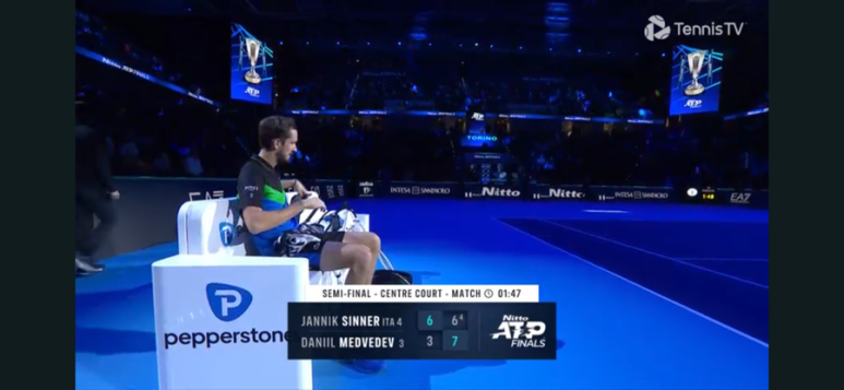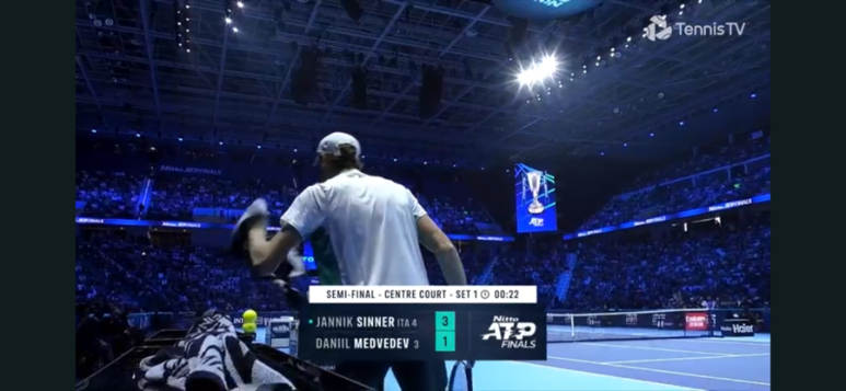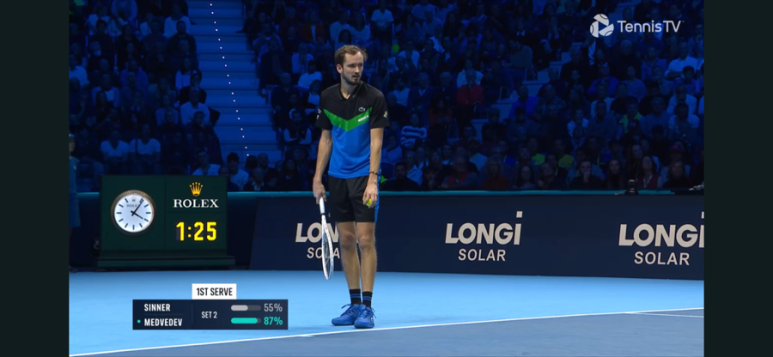 알카라스가 사용하는 주무기 -베이스라인 끝까지 보내고 드롭놓기 등….시너가 잘 사용해서 메드베데프를 무너뜨리고 있다