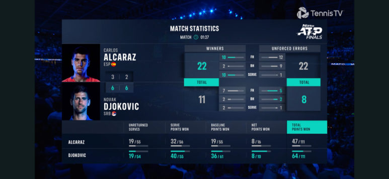 위너는 알카라스가, 조코비치는 실수 없이 정교한 플레이를 해냈다. 근래 본 경기중에 제일 많이 뛰고 제일 네트플레이도 많이 했던 것 같음
